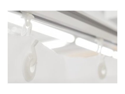 Polyester dodává látce jemnost na dotyk ale i pevnost v tahu. Zároveň si textilní koupelnové závěsy udržují voduodpudivé vlastnosti, nezachytávají nečistoty, čímž se snižují nároky na údržbu. Součástí balení jsou bílé plastové kroužky.