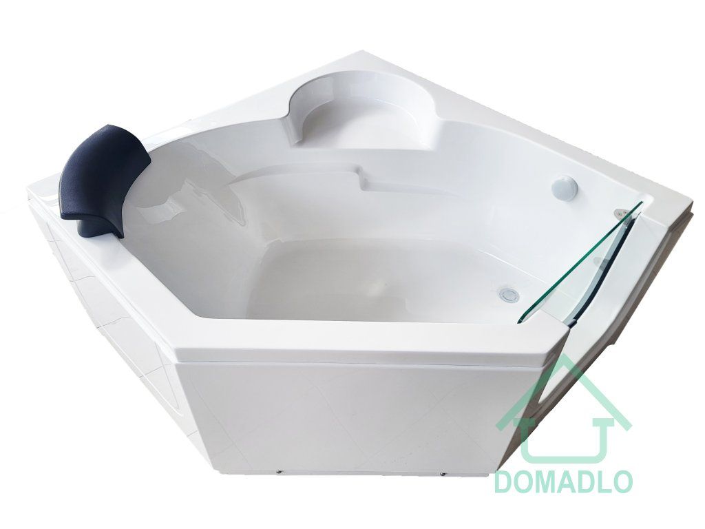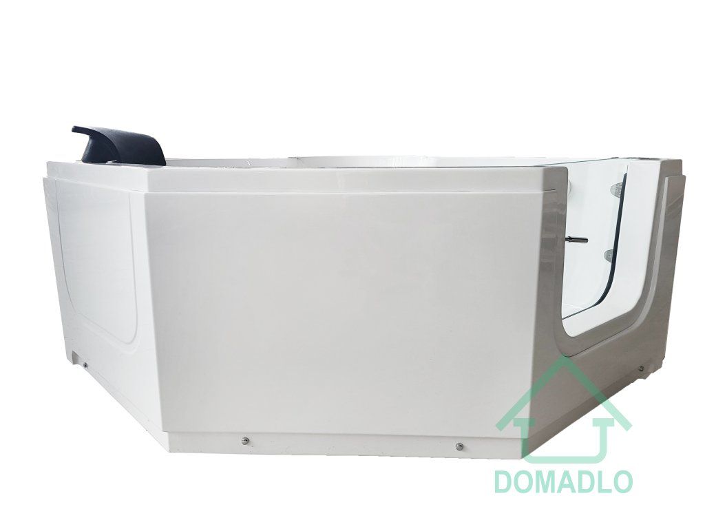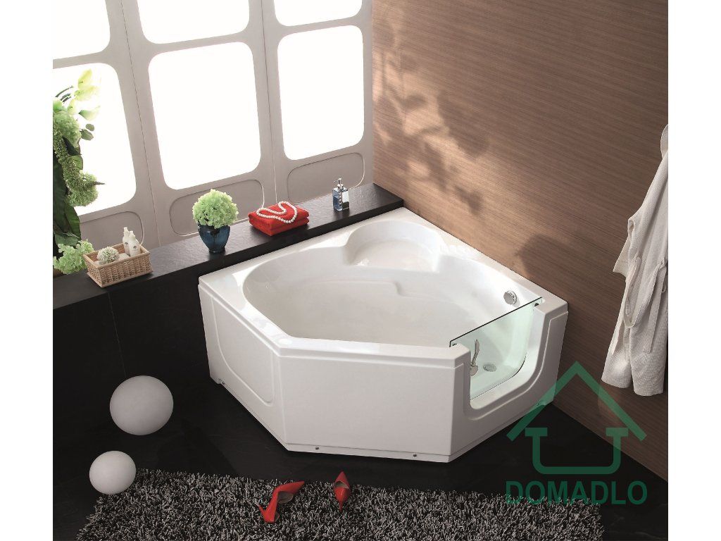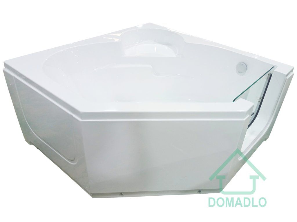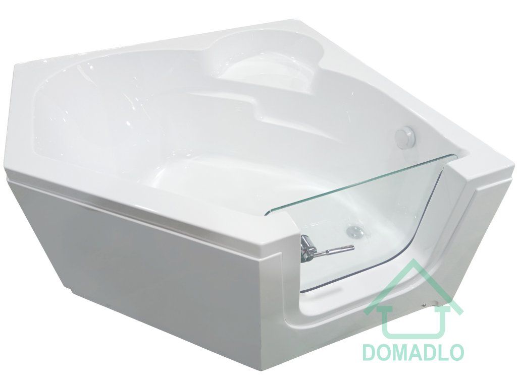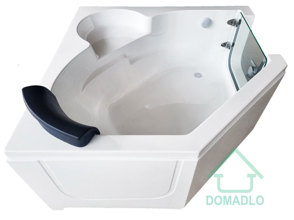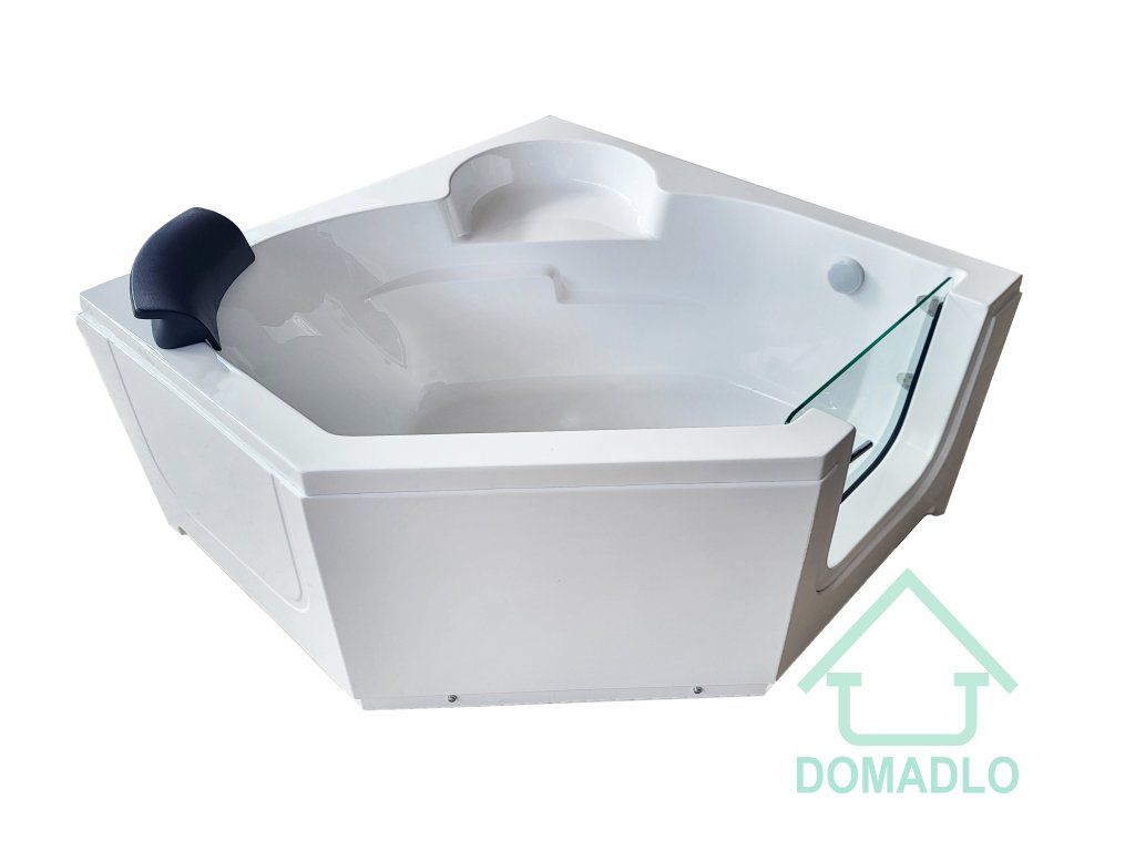 Rohová vana o rozměru 1350x1350x650 mm s dveřmi z tvrzeného skla