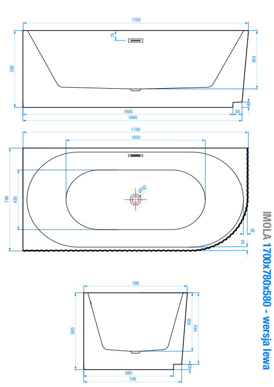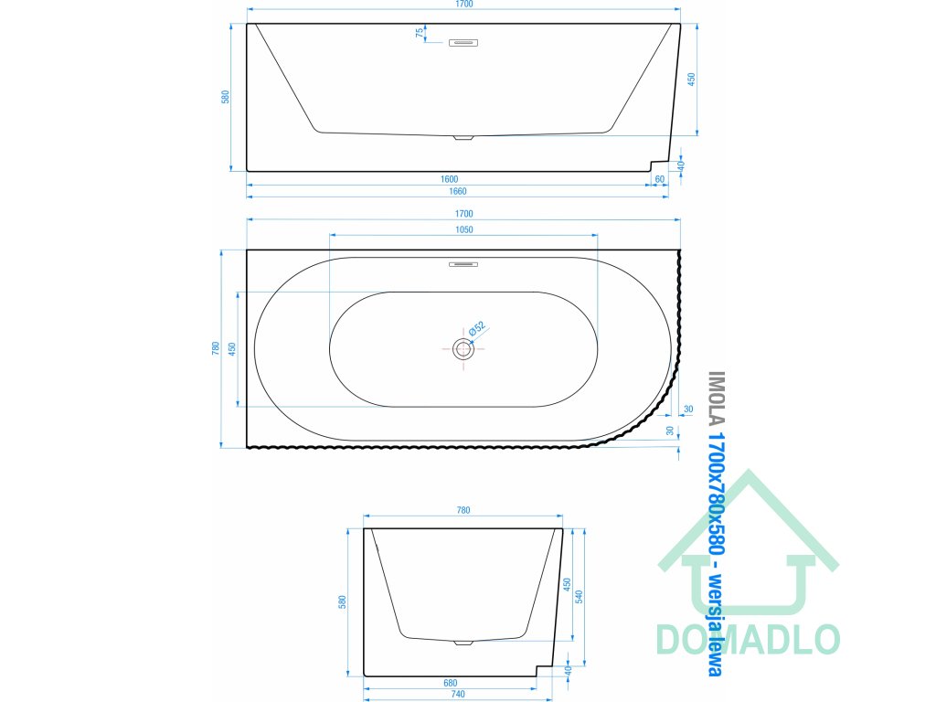 V naší nabídce najdete také identický model o rozměrech 150 x 75 v levém provedení a také stejný model volně stojící vany IMOLA o rozměrech 160 x 75 cm v levostranném i pravostranném provedení.