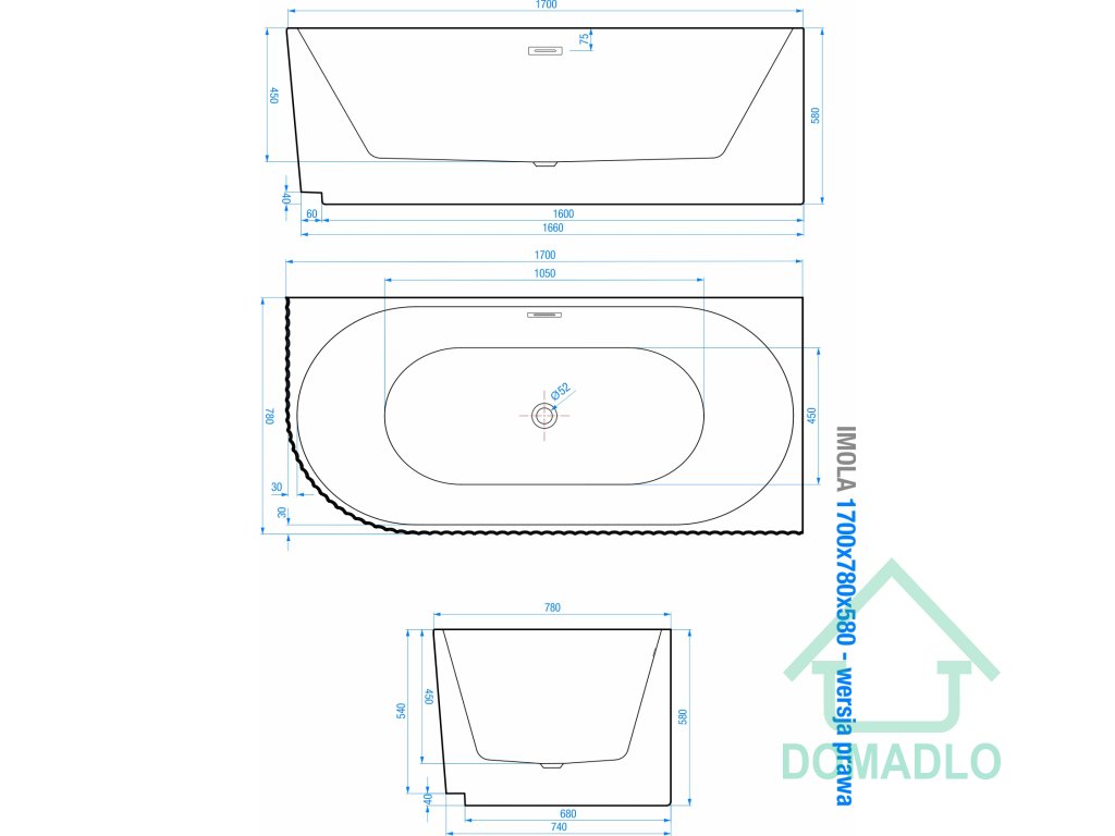 V naší nabídce najdete také identický model o rozměrech 150 x 75 v levém provedení a také stejný model volně stojící vany IMOLA o rozměrech 160 x 75 cm v levostranném i pravostranném provedení.
