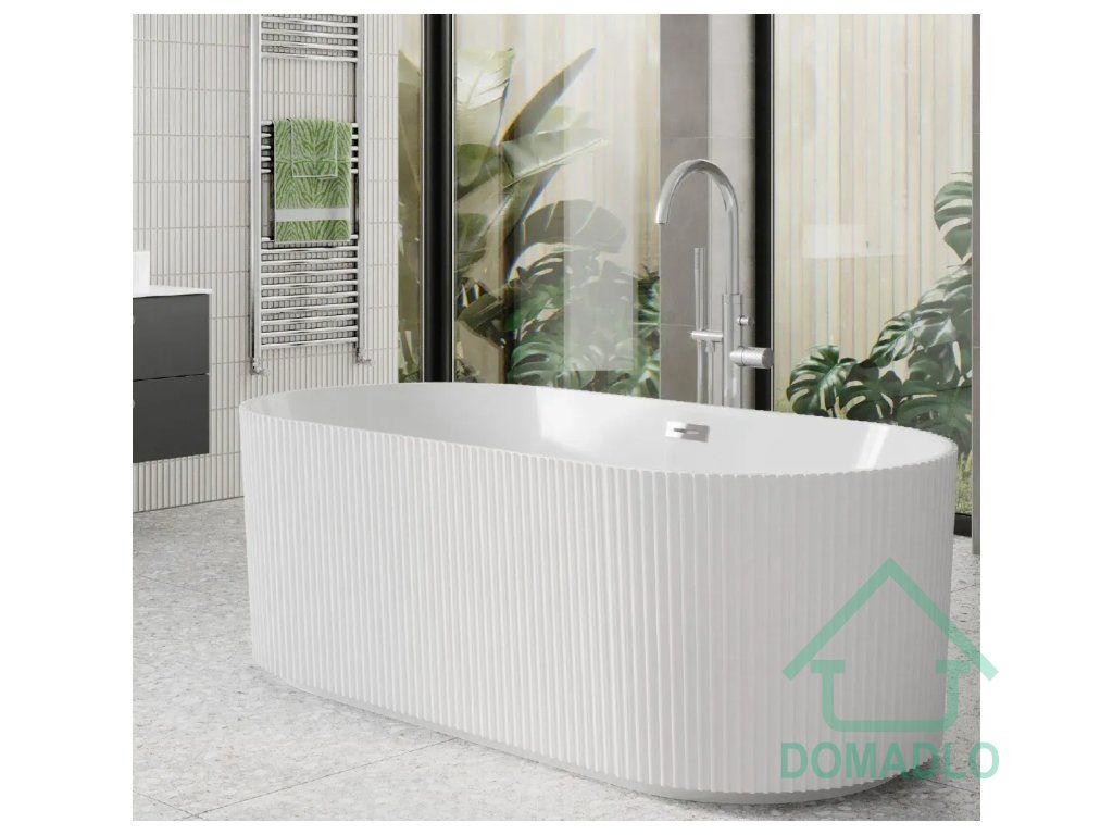 Malá volně stojící oválná vana ISOLA 170x75x58 cm je ideální volbou pro ty, kteří hledají produkt, který nejen zajistí relaxační koupání, ale také obohatí výzdobu malé koupelny. Tento model volně stojící vany s pruhy si získává příznivce díky jednoduché, bezvadné linii produktu. Zákazníci, kteří si vybrali tuto oválnou vanu do své koupelny, ji oceňují pro její originální design a skvělé tvarování – pozornost upoutá tenký forma koupelnové vany, který zdůrazňuje její modernistický vzhled, a pouzdro s jedinečným rýhovaným tvarem, které učiní z vaší koupelny oázu relaxace a luxusu. Koupel v takové stojací vaně bude čistým potěšením! Tato stojací oválná vana s pruhy bude skvělým prvkem vybavení jak klasických interiérů stylizovaných do retro koupacích salonů, tak i těch minimalistických, ultramoderních koupelen, které byly přímo vyňaty z nejprestižnějších interiérových dopisů.