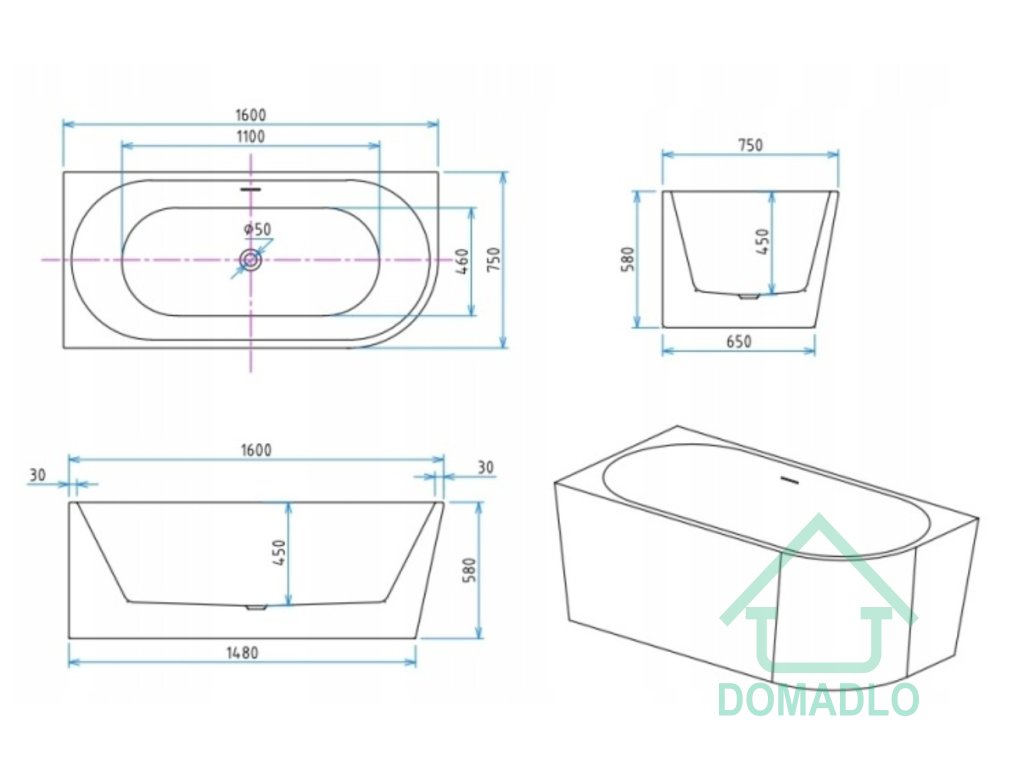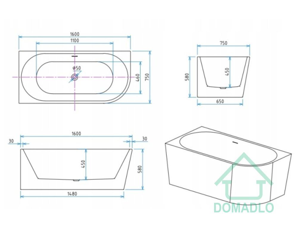 TECHNICKÁ SPECIFIKACE VOLNĚ STOJÍCÍ OBDÉLNÍKOVÉ VANY LAOLA