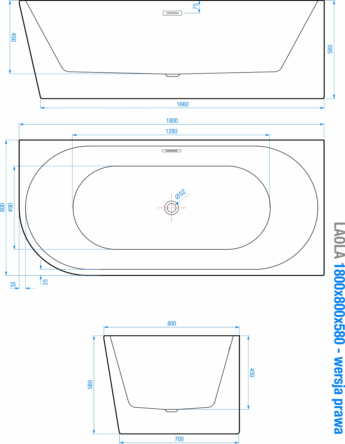 TECHNICKÁ SPECIFIKACE VOLNĚ STOJÍCÍ OBDÉLNÍKOVÉ VANY LAOLA