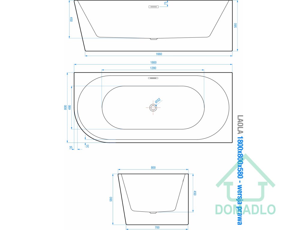 TECHNICKÁ SPECIFIKACE VOLNĚ STOJÍCÍ OBDÉLNÍKOVÉ VANY LAOLA