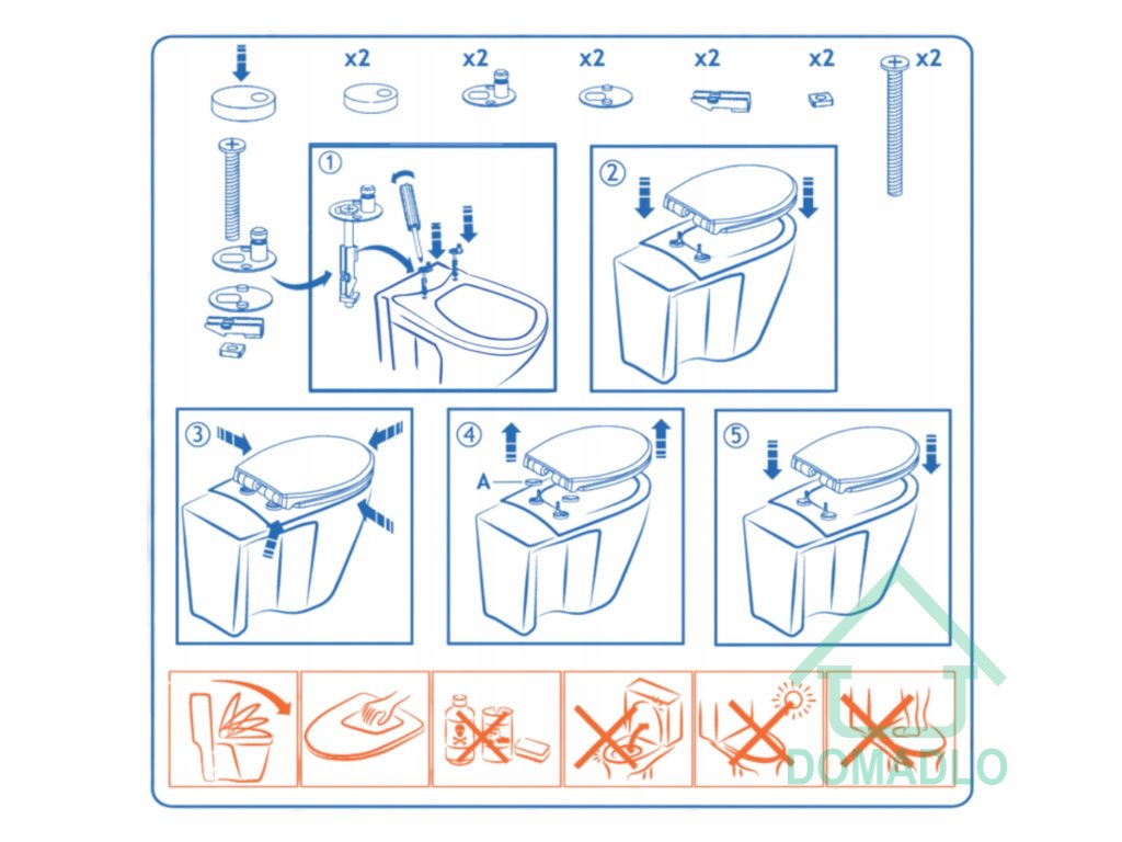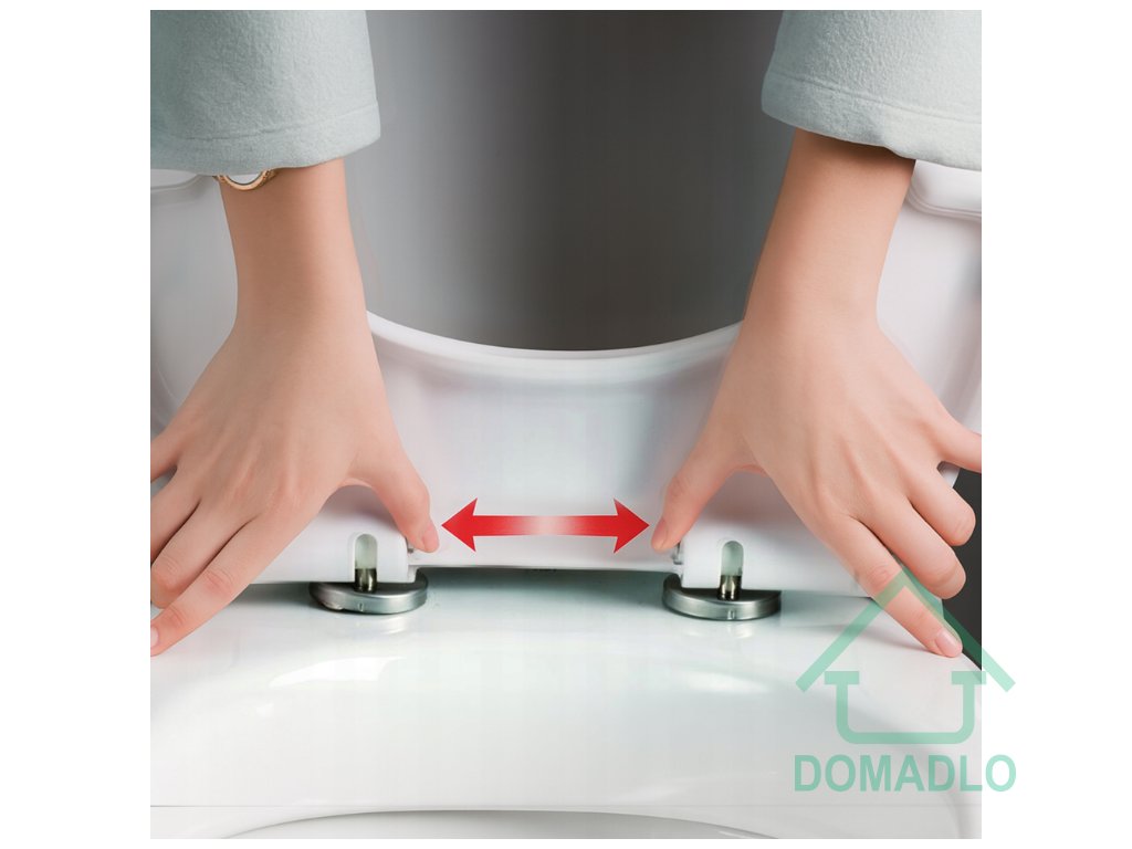 Obdelníkové odnímatelné WC prkénko s pomalým sklápěním. Upevnění je regulovatelné jak do šíře od 145 - 205 mm tak dopředu a dozadu 4,6cm. Rychloupínání umožňuje po mírném zatlačení na dvě tlačítka prkénko odebrat a zjednodušit si tím přístup při čištění mísy. Systém pevného uchycení s pojistkou.